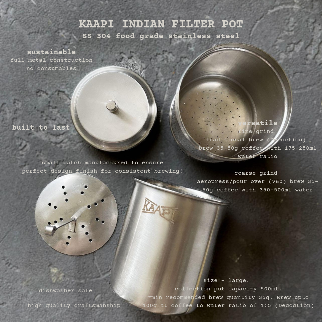 Unlike cheaper mass manufactured Indian filters, our KAAPI filters are built to last years of use - using industry best food grade stainless steel / high gauge brass. The quality of the build will make sure your brewing experience is consistent and enjoyable.